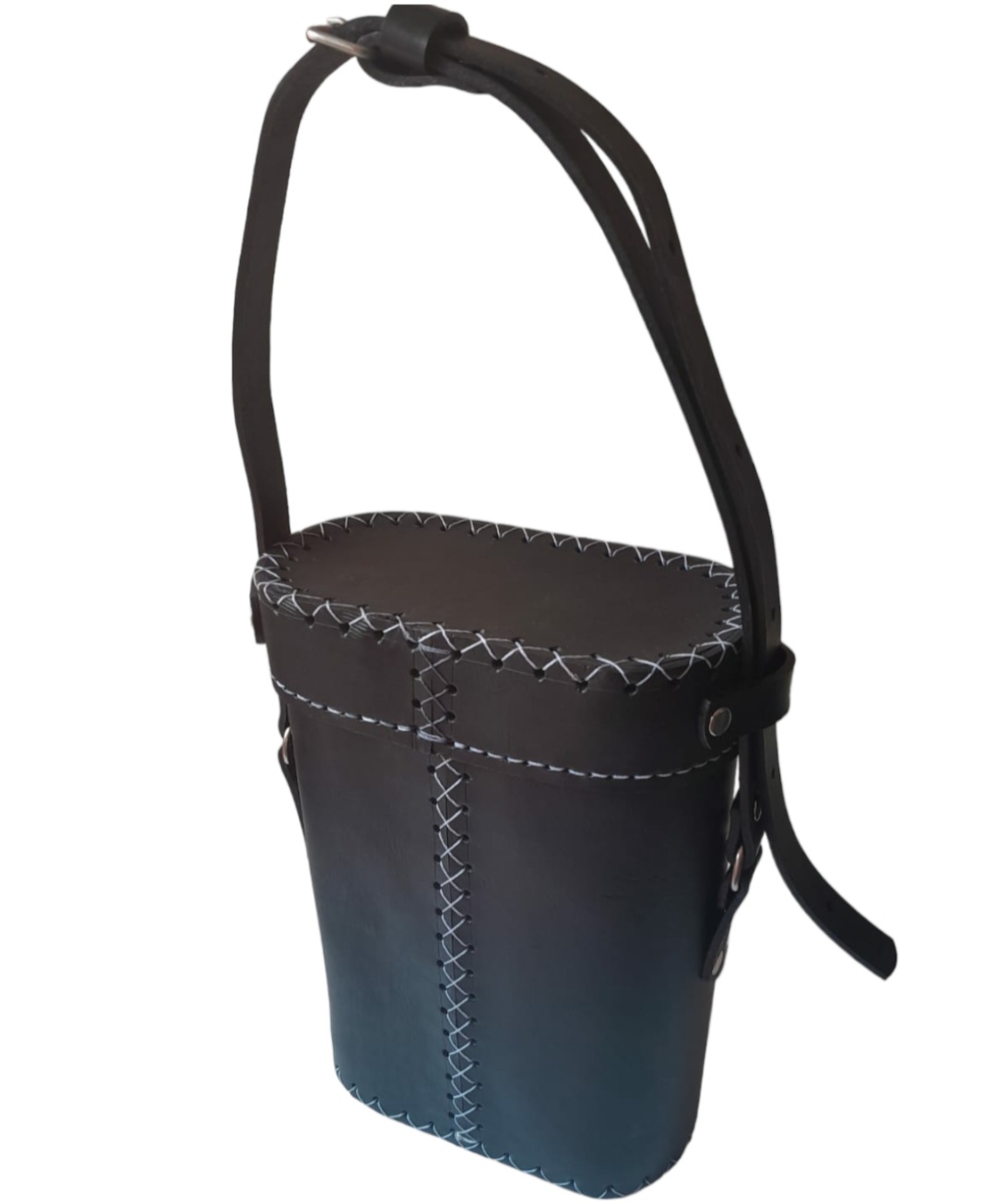 Bolso matero con tapa, material cuero de alta calidad, color negro.