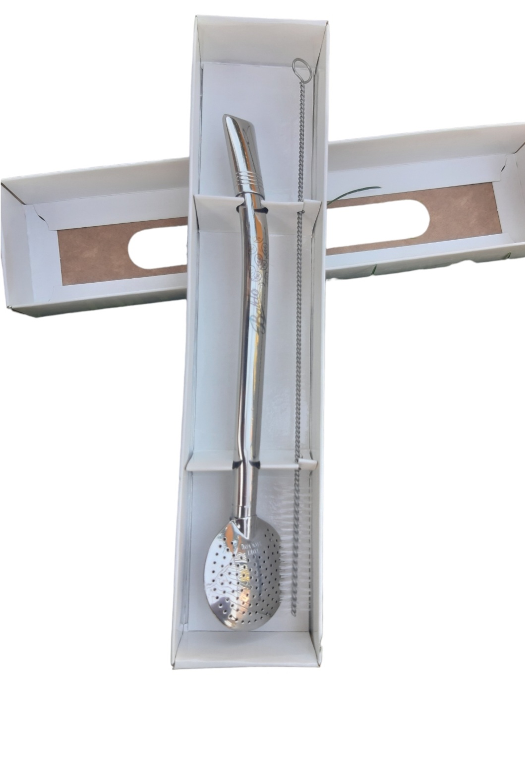 Bombilla acero inoxidable, desmontable, incluye escobilla de limpieza , envase cajita blanca